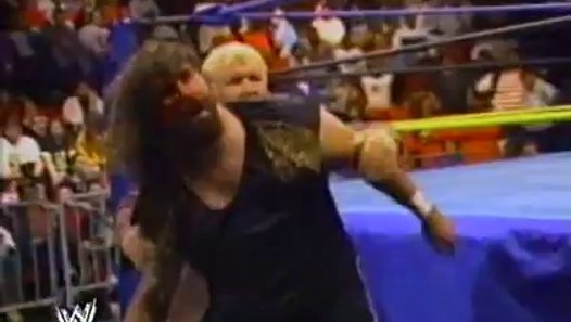 La fuertísima caída que mick foley (cactus jack) tiene sobre el concreto, de la que otros luchadores no se hubieran levantado, la resistencia al castigo es una característica única de foley.
