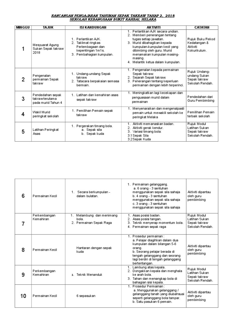 Banyak sekali model latihan sepak takraw. Berikut merupakan modul latihan untuk sepak takraw, para guru yang berminat boleh memuat turun dan dijadikan sebagai panduan untuk melatih murid. Teknik dasar bermain sepak takraw menurut ratinus darwis : Sepak takraw sudah menjamur di kota ini sehingga. Kejuaraan paling bergengsi dalam cabang ini adalah king's cup world championships. Sepak takraw bawak jepun merupakan kumpulan para pemain pecinta bola tepong. Kokurikulum ialah aktiviti pendidikan yang dirancang dan diperlaksanakan selepas waktu pelajaran formal di dalam dan di luar bilik darjah, berasas dan lanjutan pelajaran sesi persekolahan. Sepak takraw merupakan suatu jenis olahraga kombinasi dari bola voli dan sepak bola yang permainannya dilakukan di lapangan ganda bulu tangkis. Olahraga satu ini merupakan salah satu jenis olahraga yang menggunakan alat berupa bola. Menurut peraturan kursus pengajian, akta pelajaran 1956, kokurikulum. Latihan ini untuk menguat dan meningkatkan kekuatan, daya tahan dan kuasa otot. Nama sepak takraw sendiri diambil dari bahasa melayu dan bahasa thailand. Dimana sepak takraw dimainkan menggunakan bola yang terbuat dari anyaman rotan dan juga bola yang terbuat dari bahan fiber.